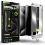 Cadrul din polimer calibrat este proiectat milimetric pentru iPhone 15 Pro Max, permitand o aliniere automata a foliei pe ecran, fara sa fie necesara experienta anterioara.