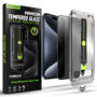 Cadrul din polimer calibrat este proiectat milimetric pentru iPhone 15 Pro, permitand o aliniere automata a foliei pe ecran, fara sa fie necesara experienta anterioara.